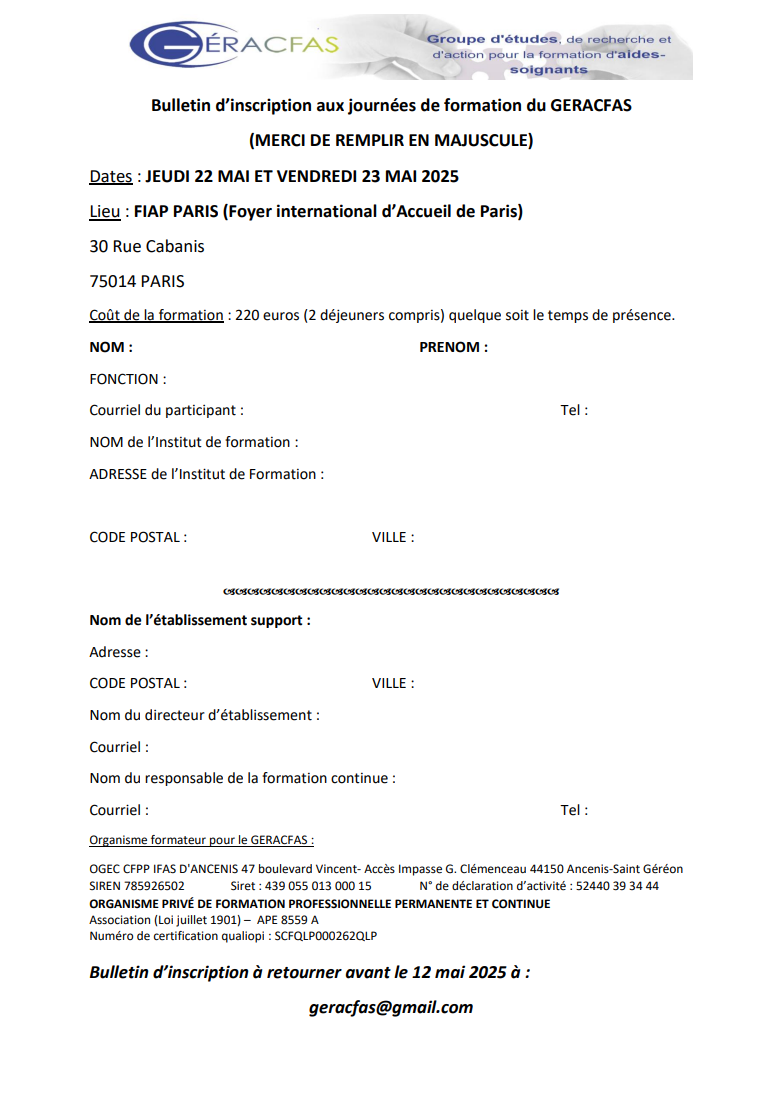 A retourner a Geracfas@gmail.com ou helene.delahays76@gmail.com